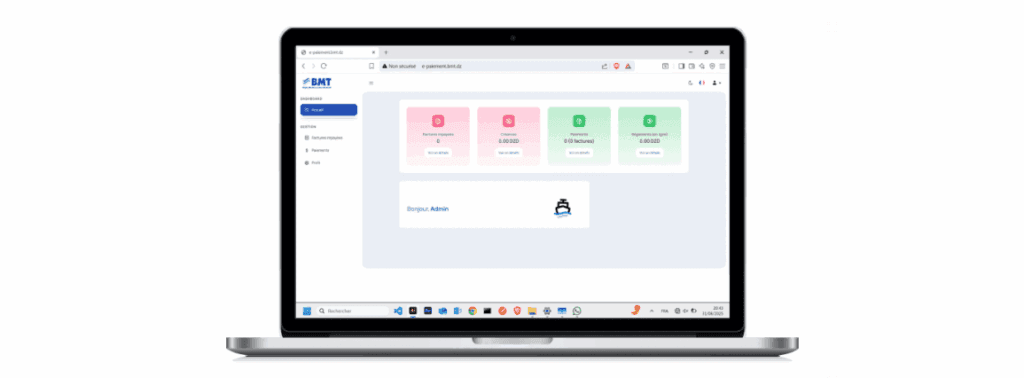 Mise à disposition d’un espace client en ligne Chers Clients et partenaires ; Dans le cadre de l’amélioration continue de nos services et afin de faciliter vos opérations de paiement, nous avons le plaisir de vous informer que BMT Spa met à votre disposition un espace client en lignehttps://client.bejaiamed.com Ce dispositif a pour objectif d’encourager l’ensemble de nos clients à consulter leurs factures, suivre leurs créances et effectuer des paiements en ligne en garantissant : Pour de plus amples informations, nous vous invitons à consulter notre site web sur le lien suivant :https://bejaiamed.com/client/ Nous vous remercions de votre confiance et de votre habituelle collaboration. Le Directeur Général Télécharger la note d’information
